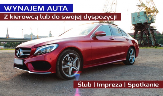 Oferujemy wynajem samochodu Mercedes C-klasy z kierowcą. Auto posiada podwyższony standard wyposażenia.